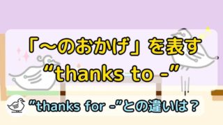 “Thanks to -”は「〜のおかげで」を意味する英語です。人や名前など、良いことが起きた原因を表すときに使います。皮肉で使うときもありますが、やや上級者向けなので初心者の方は使わなくて大丈夫です。また“Thanks for”との違いも押さえると、感謝表現の幅が一気に広がります。