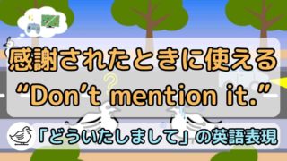 「どういたしまして」「気にしないで」を意味する"Don't mention it."のご紹介です。相手に"Thank you"「ありがとう」などと感謝されたときに使えるフレーズです!直訳すると「それを言及しないで」が、なぜこの意味になるのかも説明します。