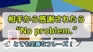かんたん英会話”No problem.”と言われたら?別の言い方はある?/意味や使い方 今回は“No problem.”「大丈夫だよ」という定番フレーズの紹介です。別の言い方(言い換え)として、”You’re welcome.”,”Don’t worry about it.”などがあります。また“No problem.”と言われたら、返し方として”Thanks!”,”I appreciate it.”などがあります。 2025.12.10かんたん英会話