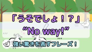 かんたん英会話”No way.”はスラング?『うそでしょ!?』を意味する英語!返し方も説明 “No way.”は「うそでしょ!?」「まさか!」「ありえない!」を表し、いい意味の驚きにも、悪い意味の驚きにも使えるこのフレーズです。スラングなのか?汚い言葉なのか?も説明していきます。また”No way.”に対する返し方(返事)もいくつかご紹介します。 2025.12.04かんたん英会話