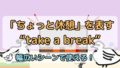 そして、”take a break”「休憩する」を表すフレーズもご紹介してます!